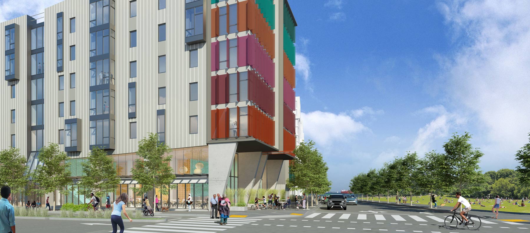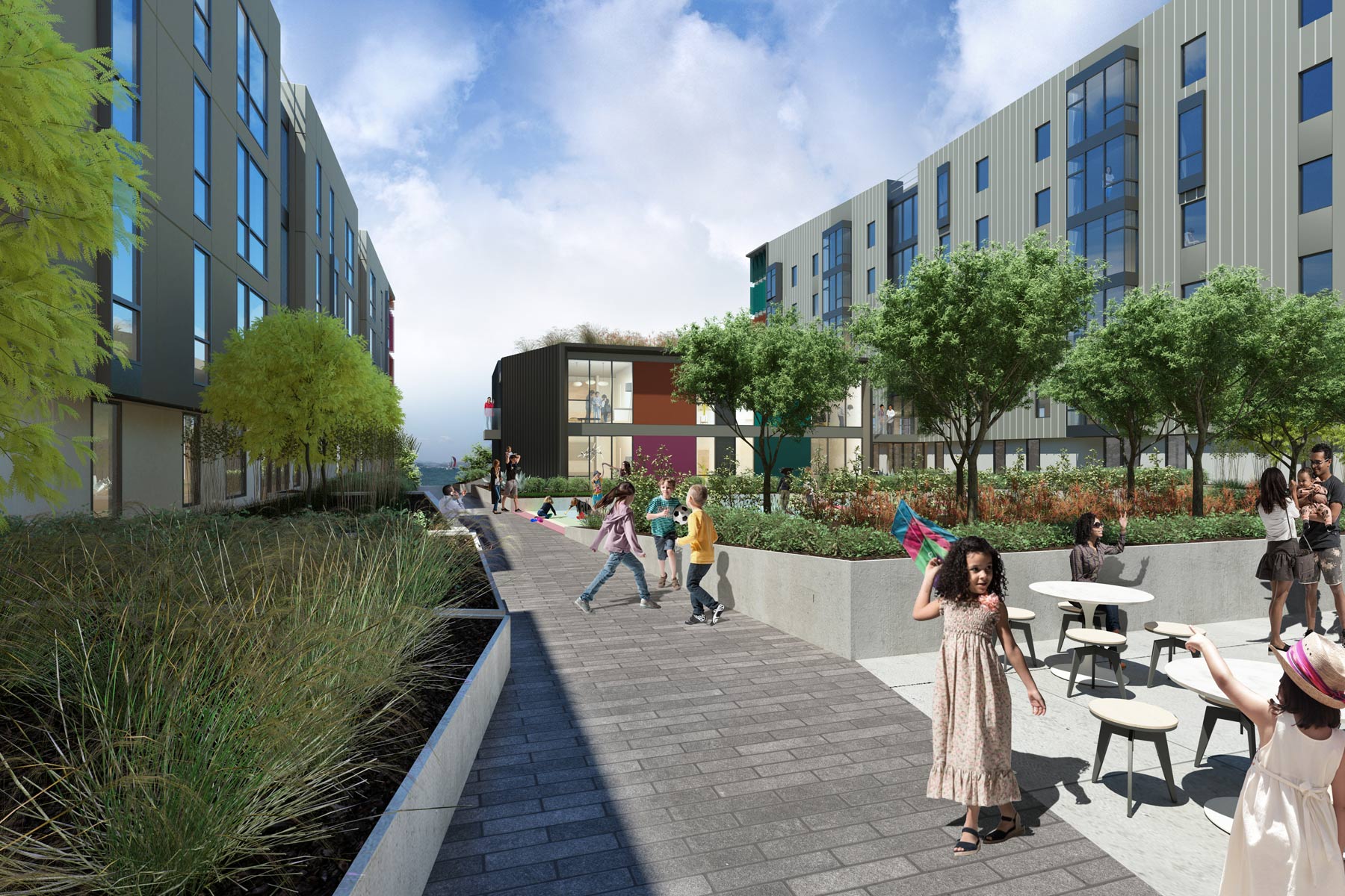 The Block 11A project will provide six stories of housing on top of a ground floor zoned for retail that will serve the larger neighborhood. The project will serve as a community gateway at many levels, from being visible from Highway 101; from the neighboring Candlestick Point Park; and from Harney Way, the main street of the development. A central courtyard within the project will provide a sunny, wind-protected communal outdoor space. The project is targeting GreenPoints Platinum.