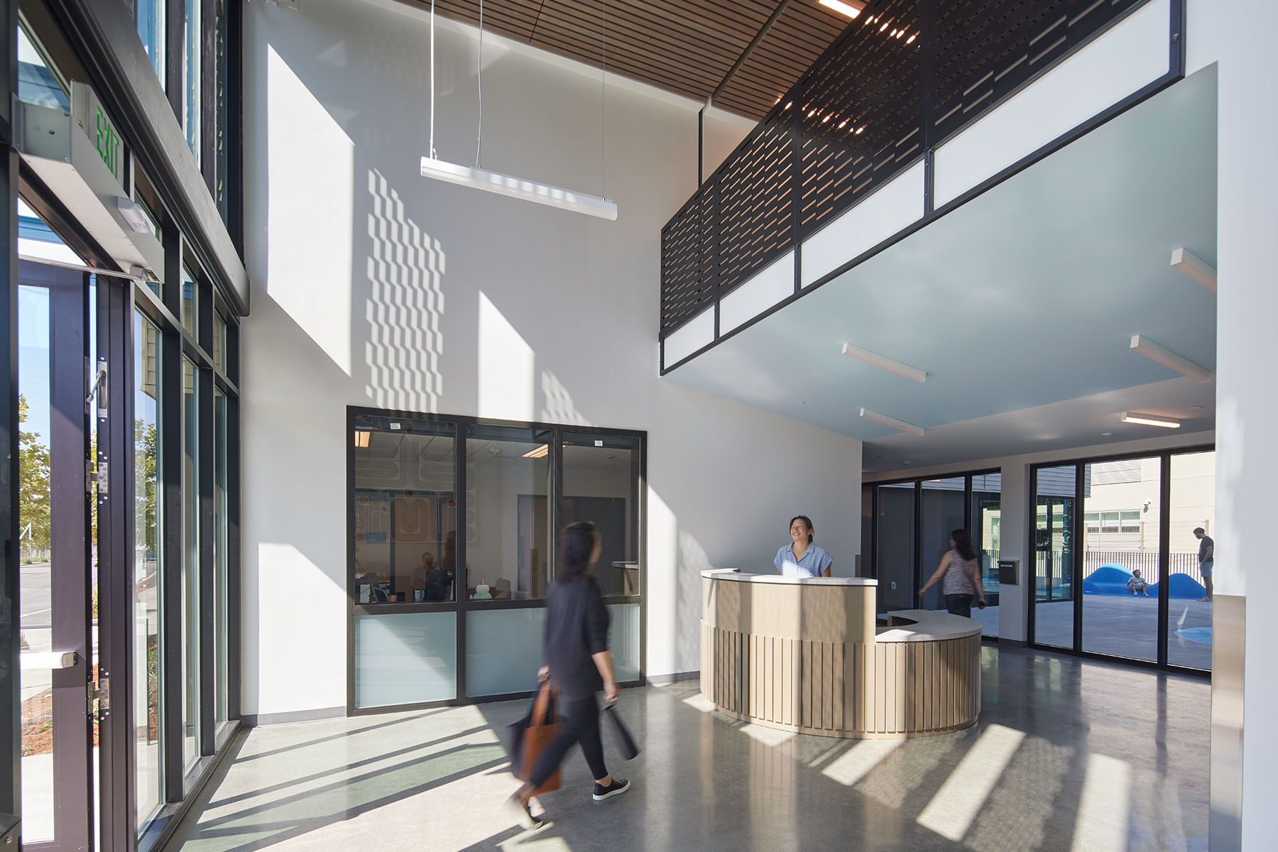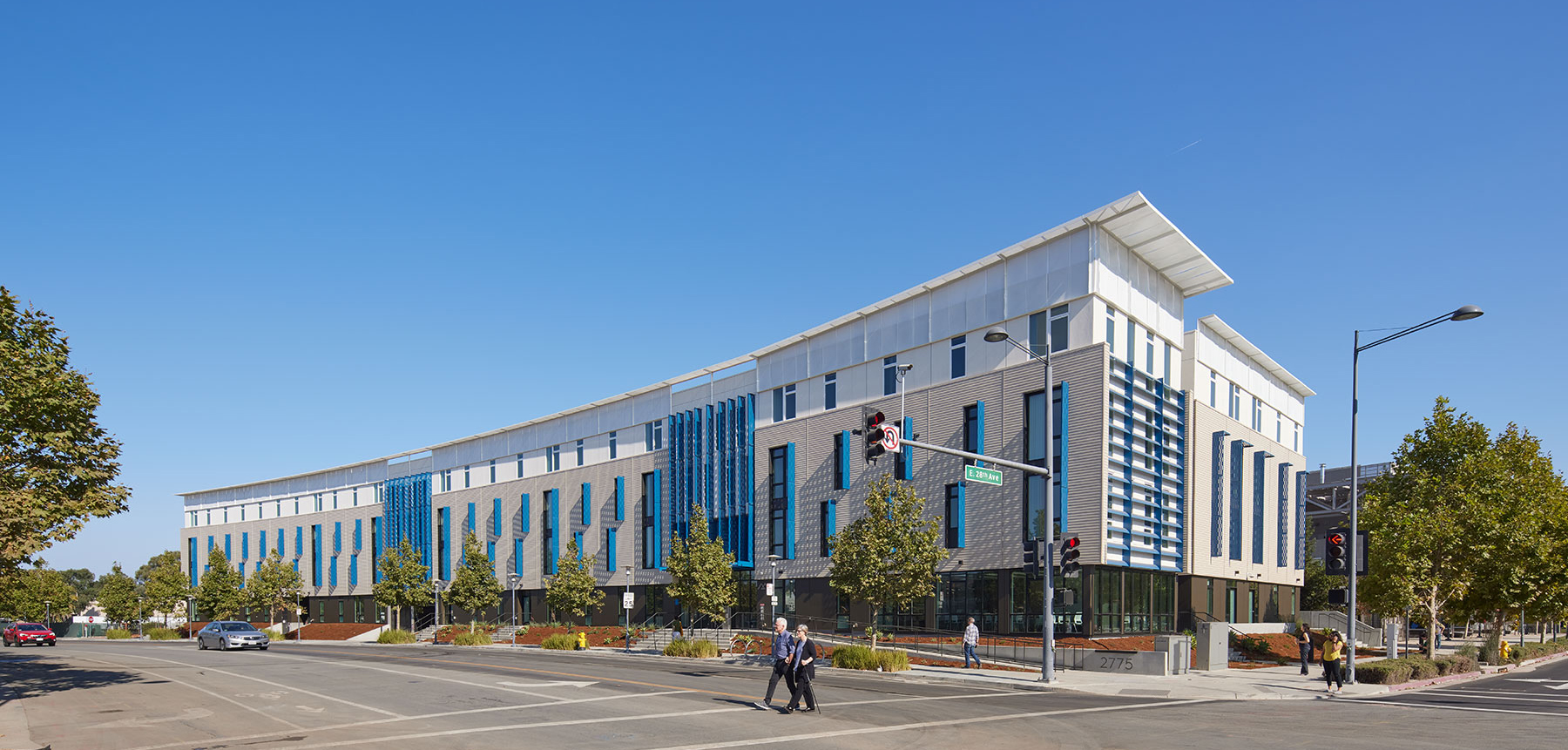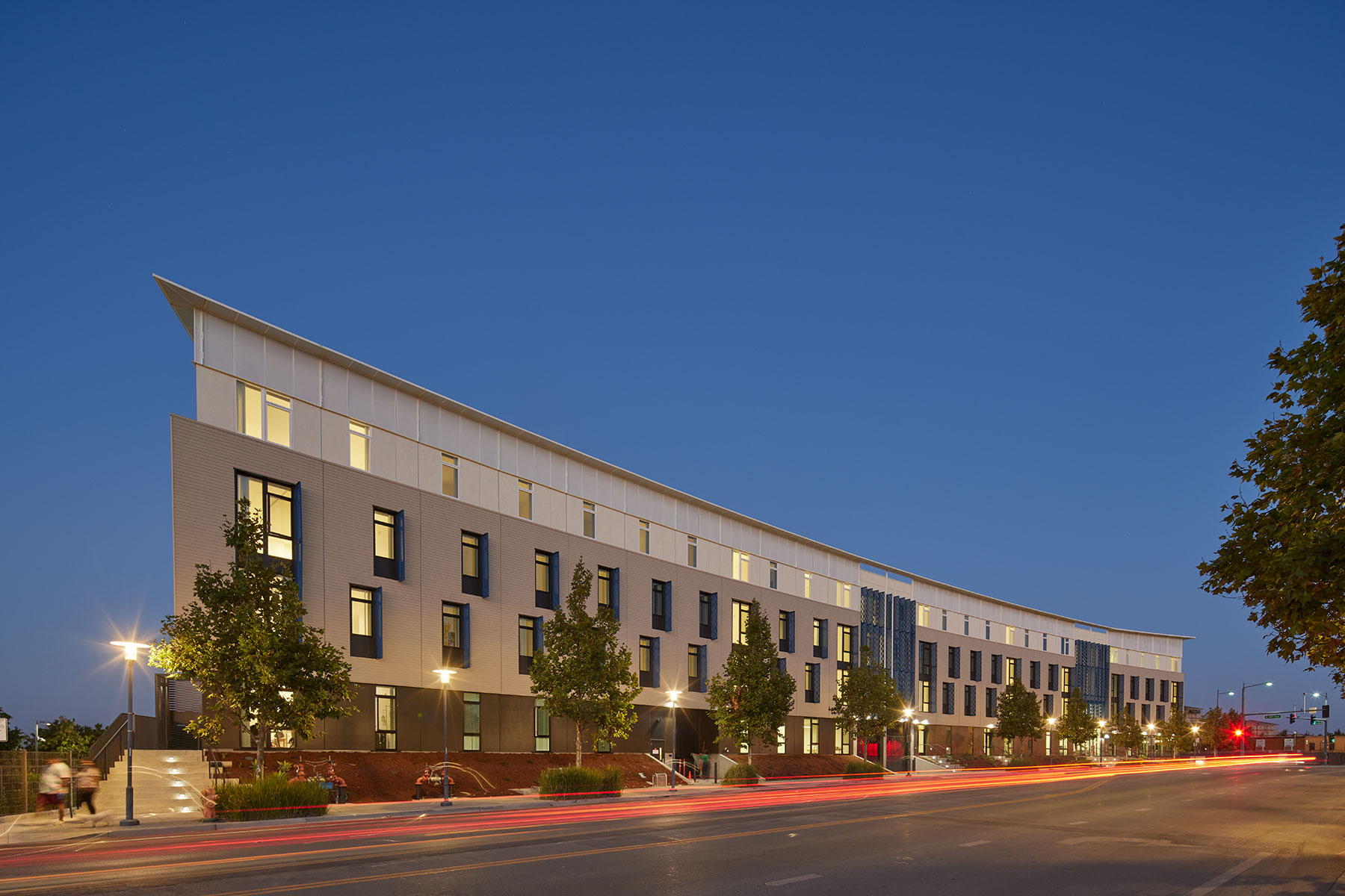 This 68-unit affordable housing project for low-income families serves as a gateway to a new transit-oriented development in San Mateo California. Located on the redeveloped former site of the Bay Meadows horse racing track, the four story building presents a distinguished contemporary façade to the community, while creating a sunny, wind-protected courtyard for the residents. Its location near a CalTrain station and multiple bus lines benefits the low-income residents as well as the larger community by helping to reduce traffic congestion and pollution. Integrated sustainable design strategies include a high-performance building envelope, solar water heating, natural ventilation and energy efficient lighting. The project is rated GreenPoint Gold.