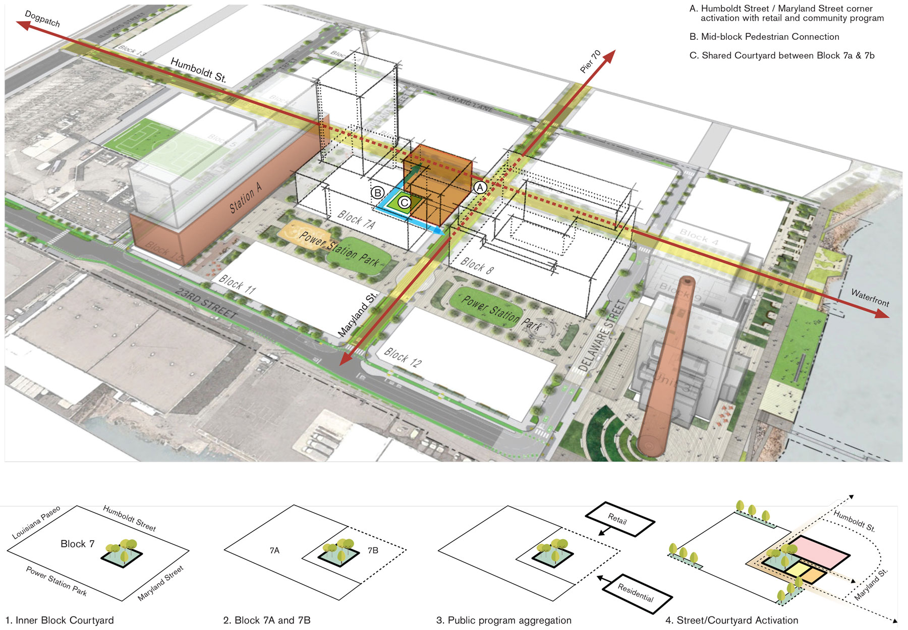 Power Station Block 7B, the Sophie Maxwell Building, is a mixed-use project in San Francisco’s Dogpatch neighborhood, featuring 105 affordable apartments and ground floor retail, drawing inspiration from the industrial quality of the historic site. Block 7B is part of the larger Potrero Power Station Mixed-Use Project, which will transform the 29-acre site of a decommissioned power station into a vibrant waterfront community.