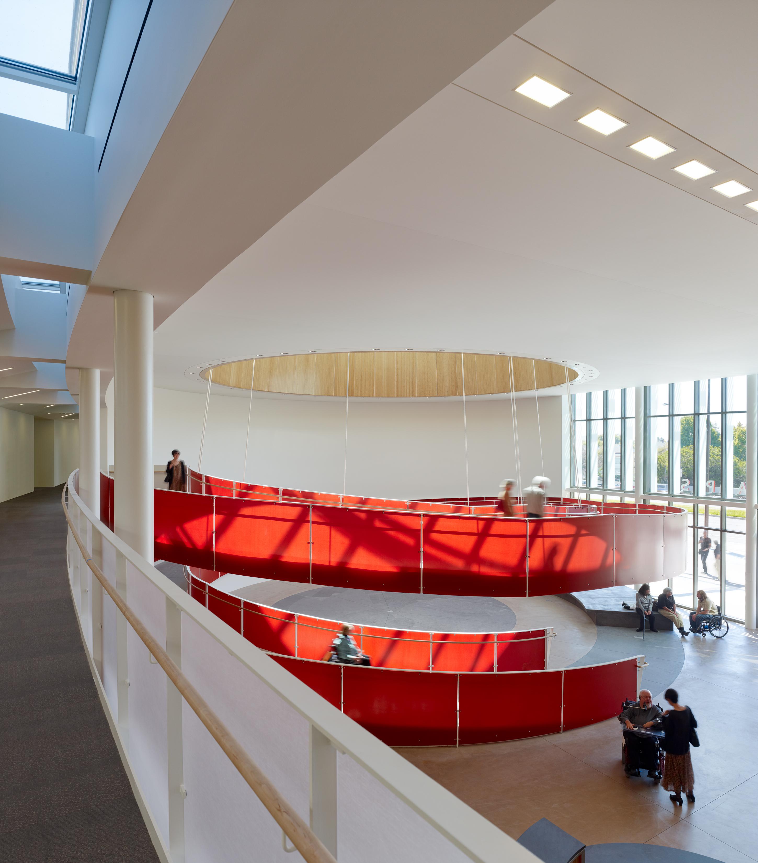 “We were trying to bring together three groups – veterans, families and the Mission Bay community as a whole,” says Gregg Novicoff, a principal in the firm. “We wanted to create a landscaped sanctuary at the heart of the building and a community room at the heart of the building.” The result is a courtyard and community center that’s shared by – and serves – the residents and the community. “It’s a garden and a refuge for the whole area,” he says.