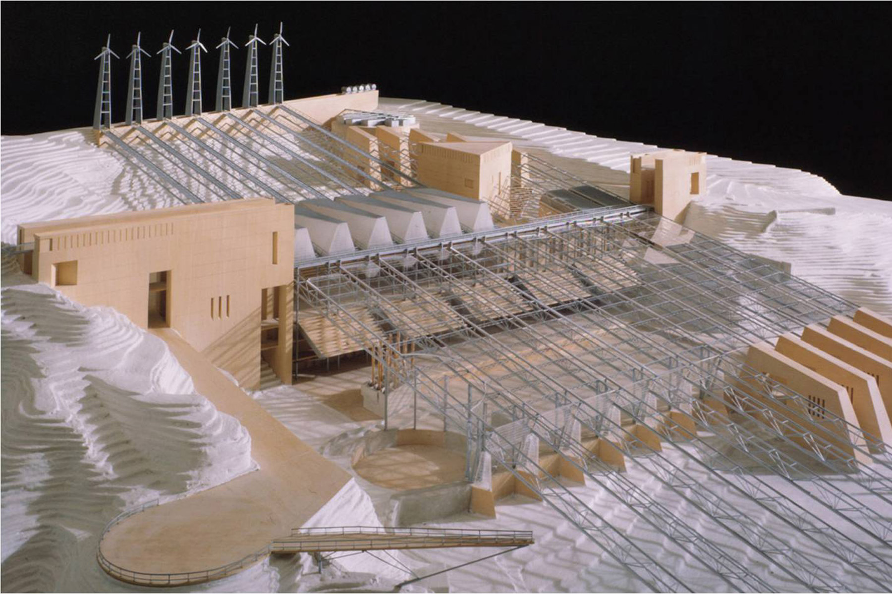 In addition to these recreational functions, the project incorporates a desalination plant and wind generators, designed to provide the city with water and power. This machinery of the city’s ongoing survival is fully revealed as an integral part of daily life. It creates greater public awareness of the limits of natural resources and of the processes required to render these resources usable.