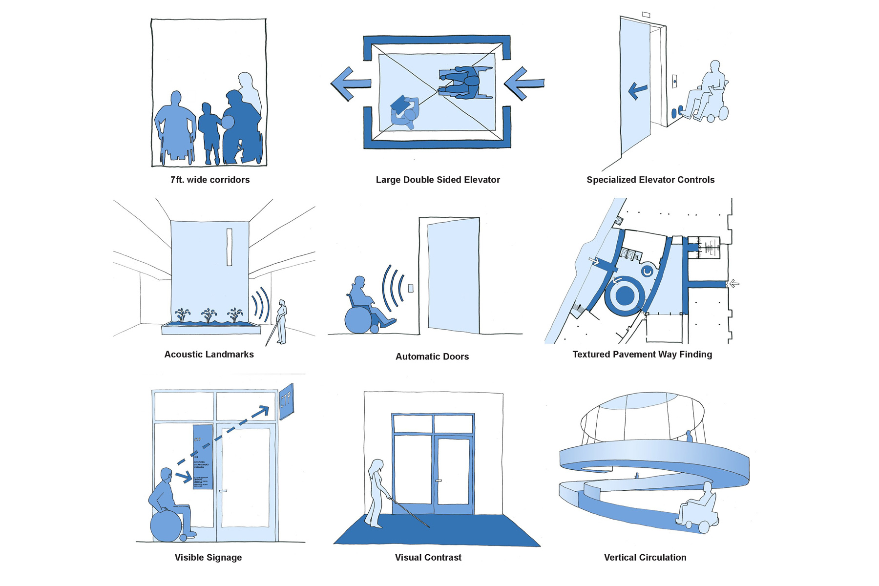 We believe everyone deserves good design, and guided by the principles of Universal Design - the creation of environments that are equally usable by individuals of all abilities - the Ed Roberts Campus exceeds the accessibility requirements of the Americans with Disabilities Act. Universal Design strategies and elements were studied and selected to maximize benefits to the broadest variety of users while remaining economical and replicable as a case study for other buildings and communities.