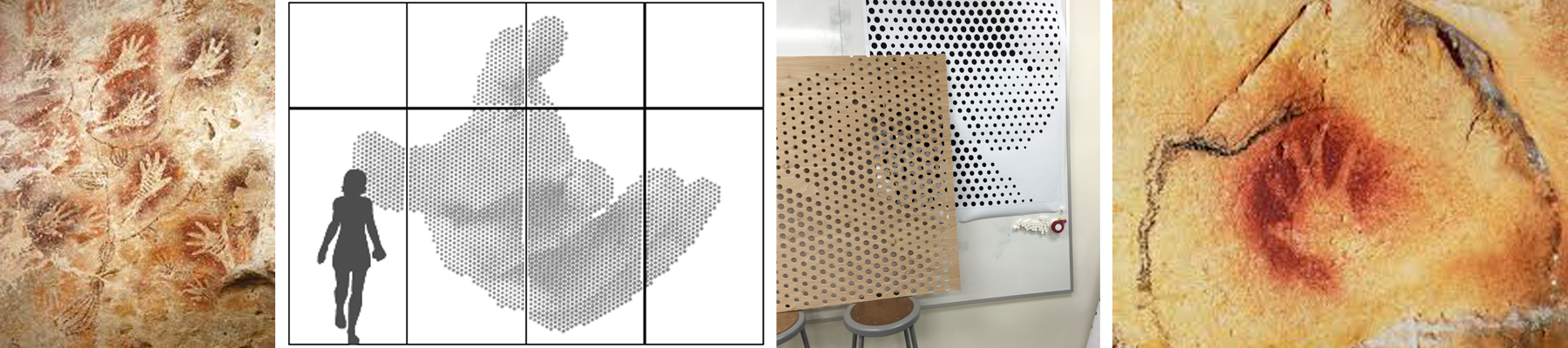 The jury noted in selecting Hands that some of the first works of art were prehistoric cave paintings of hands, as illustrated below. The concept was particularly appropriate to a building centered around design thinking and making. The idea that the tactile sense has continued relevance, even in a building with an abundance of digital fabrication tools, serves as a reminder to everyone who enters the building.