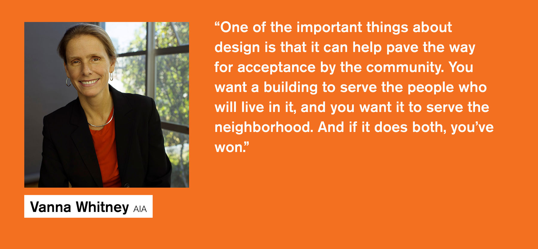 After all these years, it means actively listening to the people we work with and for. I love when, at the beginning a project, we get to hear from developers and future user what their hopes and visions are. Then we bring to life a design that gives structure to their visions and needs and desires, while also tackling issues of durability, sustainability and affordability.