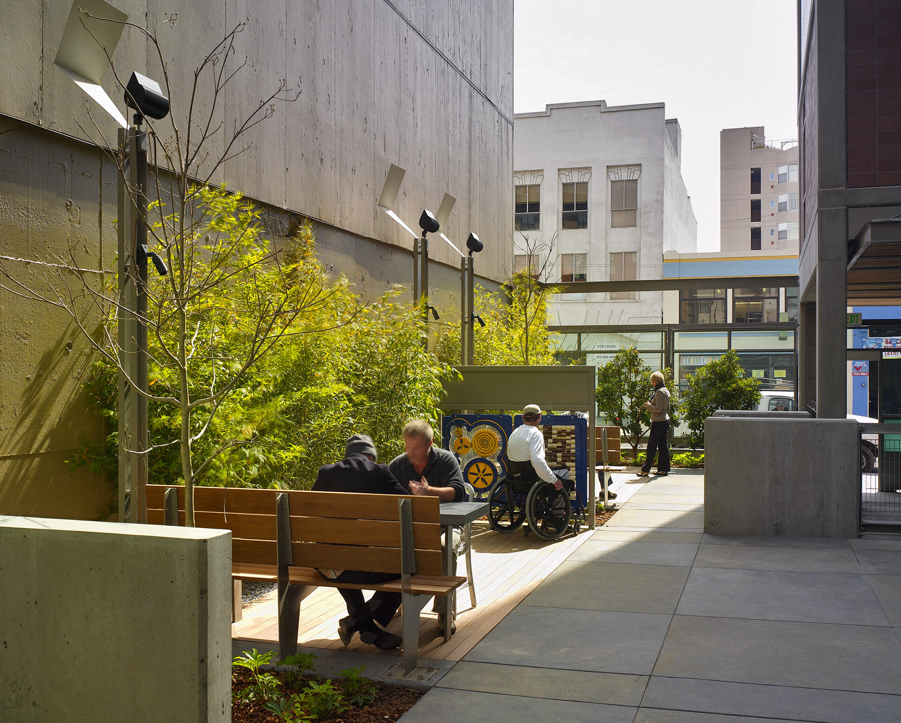 The project also achieved LEED Silver rating and participated in the Enterprise Foundation’s Green Communities Initiative. The nationwide Green Communities Initiative seeks to bring the benefits of green and sustainable design and development to the affordable housing community through grants and low-cost loans. The combination of sustainable features for an affordable housing complex along with state-of-the-art design goals led to the Plaza Apartments serving as a landmark project and setting a new standard for affordable housing in San Francisco.